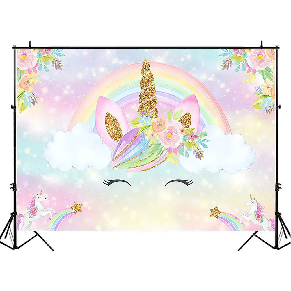 Фон с единорогом розовый цветочный единорог Радуга фон для фотосъемки с изображением День рождения украшения фото фон для фото студии