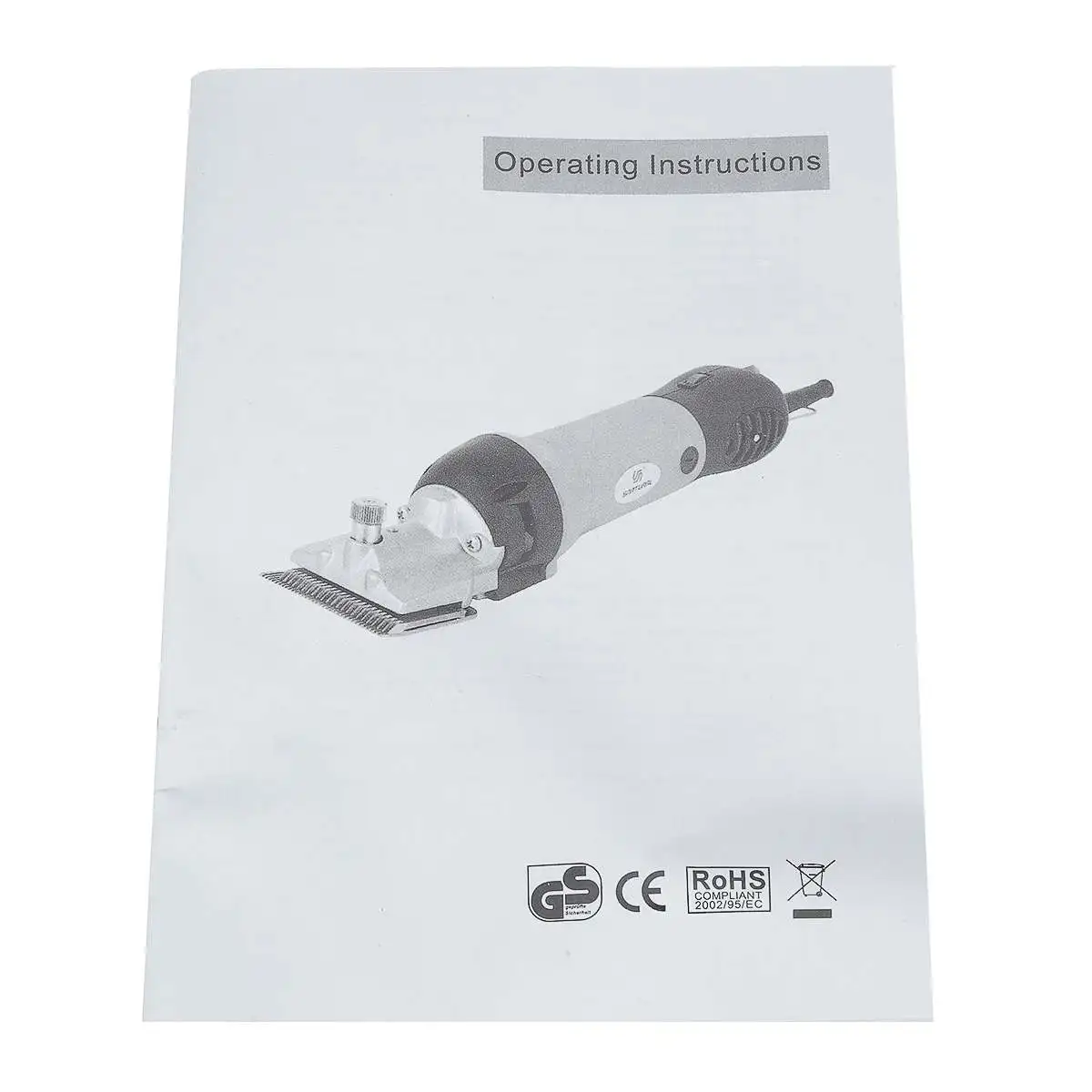 Посылка включает:1 x триммер для волос1 x Кисть1 x Пустая бутылка (100 мл)1 х Угольная щетка (пара)1 х Руководство1 x Ящик для инструментовОсобенности:1. С режущими лезвиями инструменты для резки конского волоса в течение нескольких минут.2. 6-ступенчатая для свободного выбора.3. Удобная ручка для гибкой работы.4. Нет масла, но он все еще может быть хорошо использован.5. Небольшая вибрация и низкий уровень шума.6. Идеально подходит для лошади, верблюда, мула, коровы.7. Весь набор в наборе инструментов.Параметры1. Модель: 9783752. Цвет: синий3. Тип: штепсельная вилка европейского стандарта (мы отправим вам адаптер в соответствии с вашей страной)4. Материал: металл + акрилонитрил бутадиен-стирол (ABS)5. Напряжение: 220 В6. Об/мин: 2400р/мин7. Ширина лезвия: 78 мм8. Количество верхних зубов: 24 зубьев9. Количество зубцов: 27 зубов10. Шум: 78 дБ11. Максимальная температура окружающей среды: 0 °C-40 °C12. Максимальная влажность воздуха: 10%-90%13. Размеры: 31X7.5 см/12,2 ''X2.95 ''(прибл.)14. Кабель питания: 5 м