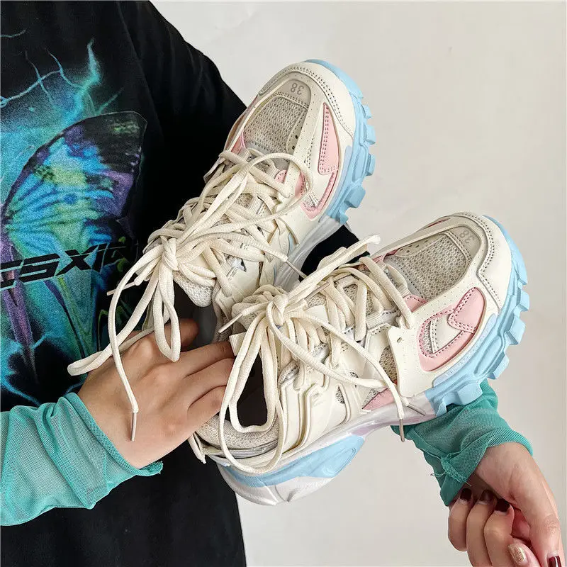 Женские кроссовки на массивной подошве, розовые спортивные повседневные кроссовки большого размера 41 42