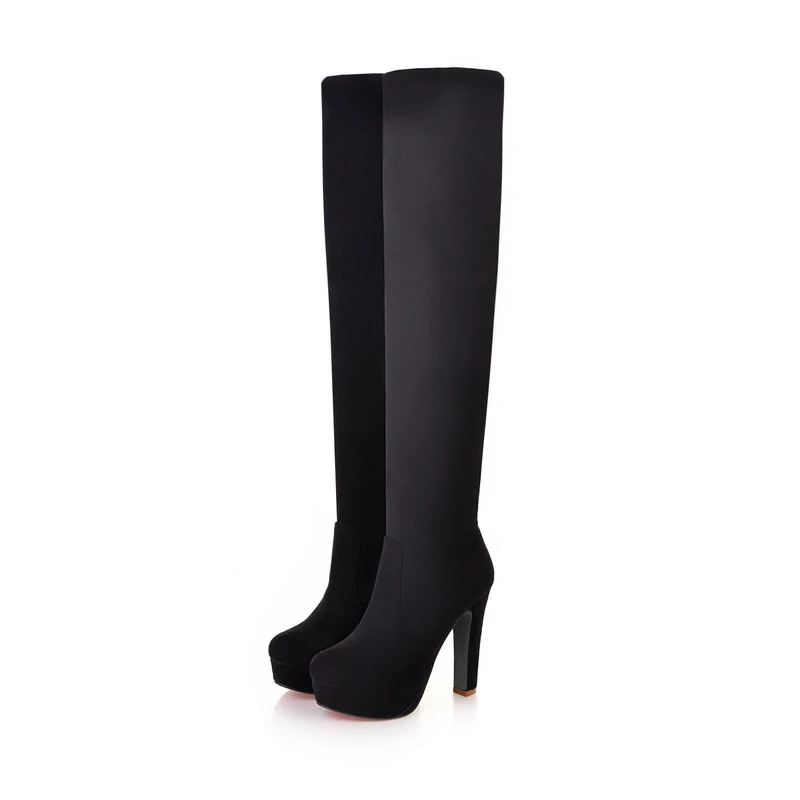 Женские сапоги выше колена, теплые женские сапоги на платформе, женская обувь на высоком каблуке, облегающие сапоги до бедра, женские зимние сапоги