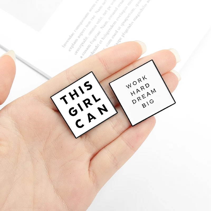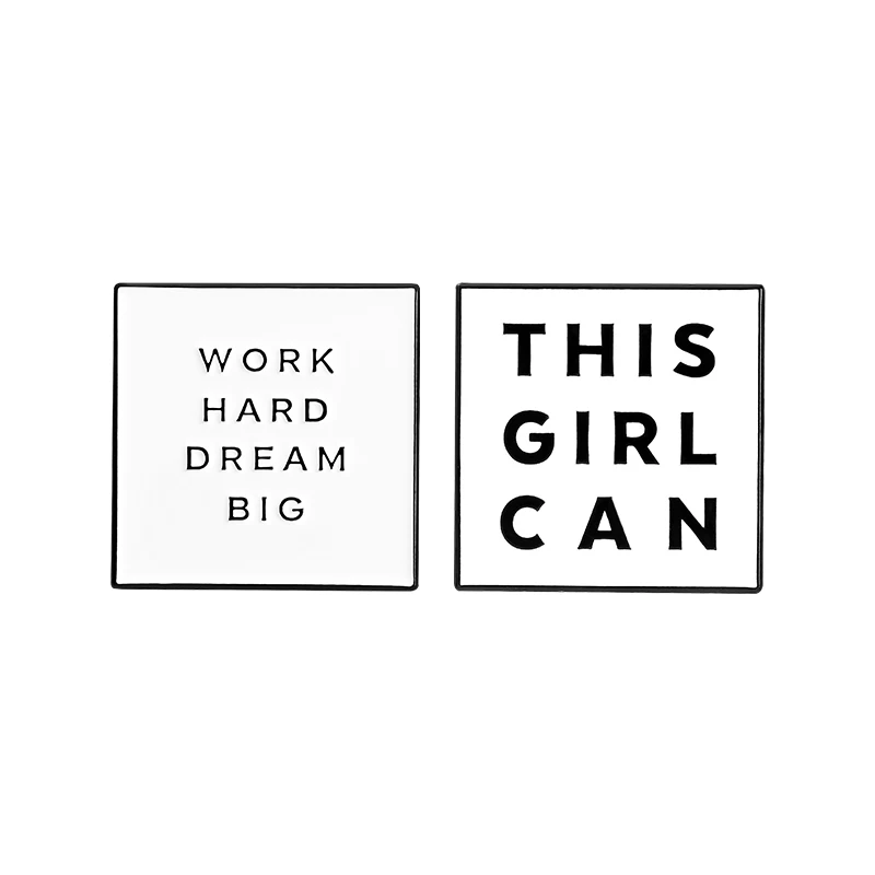 Эмалированные булавки с цитатами вдохновения, квадратные черные и б...