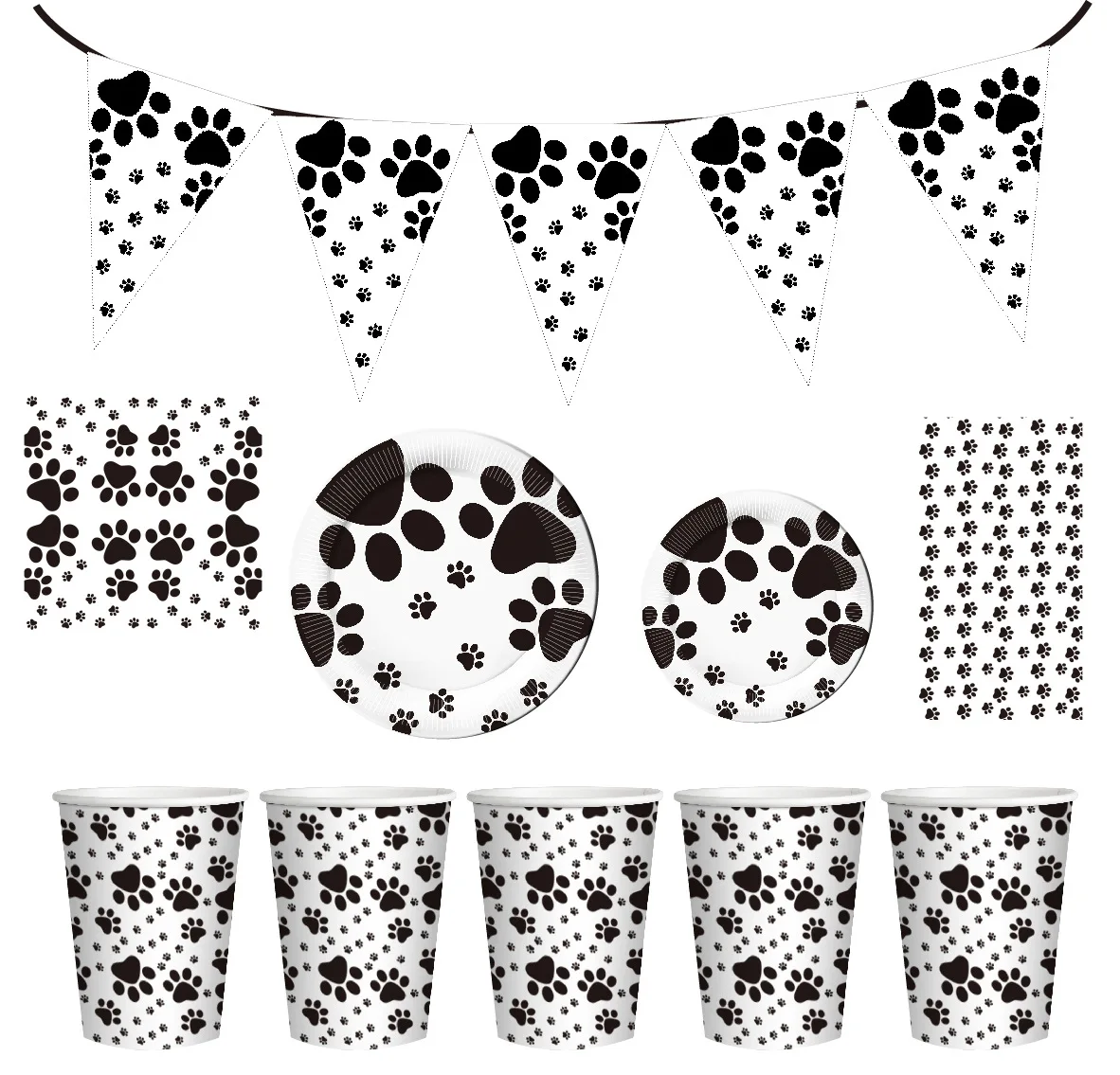Одноразовая посуда с изображением мультяшных собачьих лап