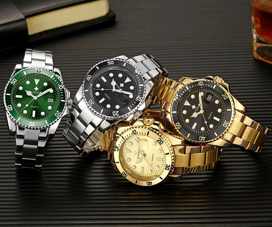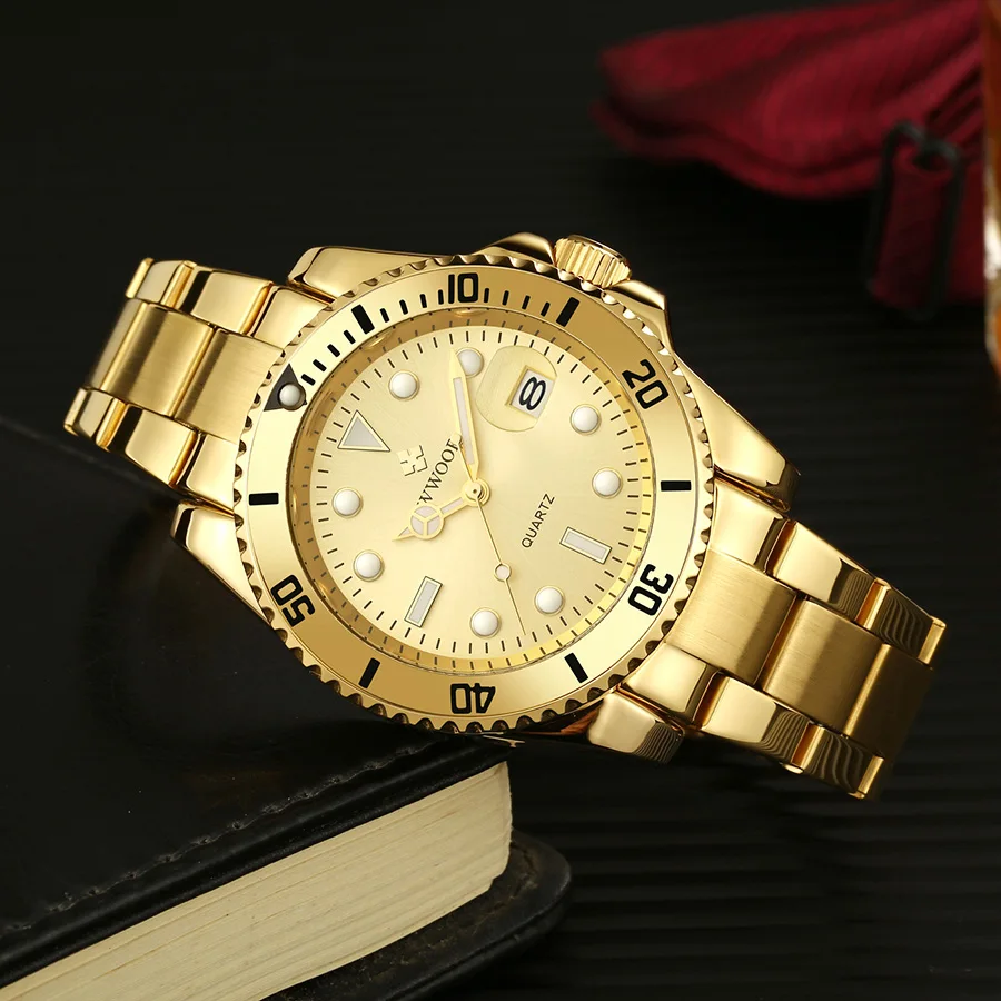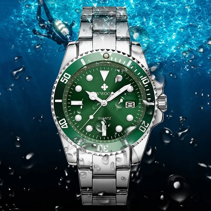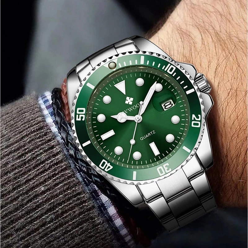 Часы WWOOR Мужские кварцевые, водонепроницаемые, с автоматической датой