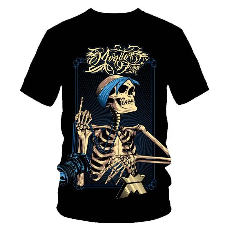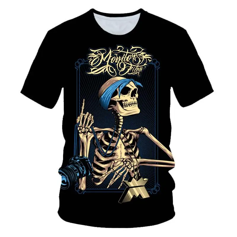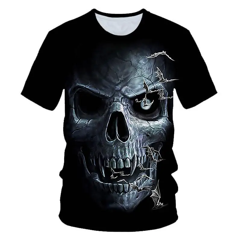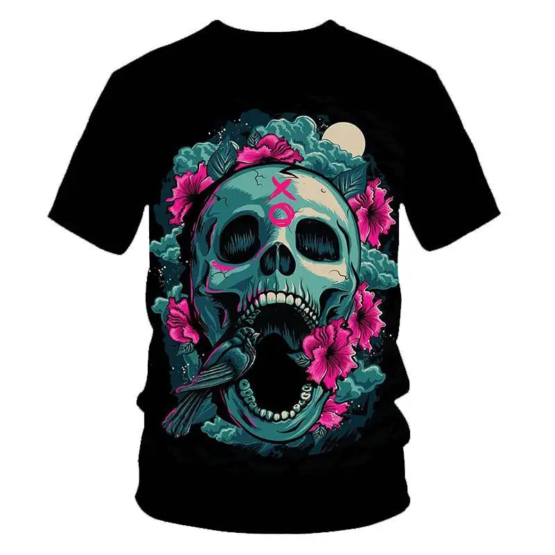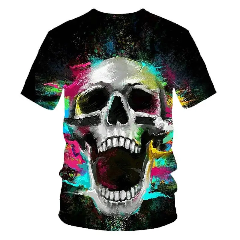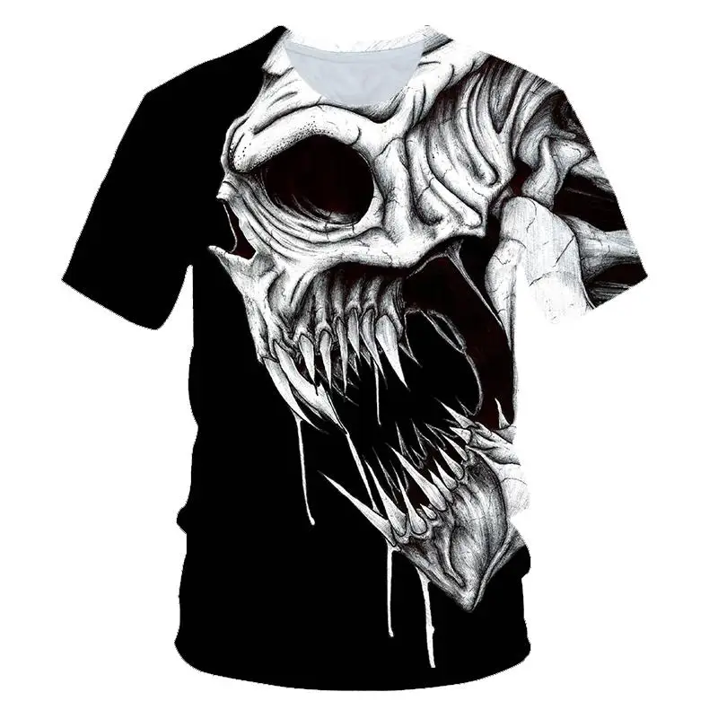 Футболка мужская с 3D-принтом страшного черепа, модная тенниска в стиле панк, майка с круглым вырезом, одежда для мальчиков, уличная одежда, большие размеры
