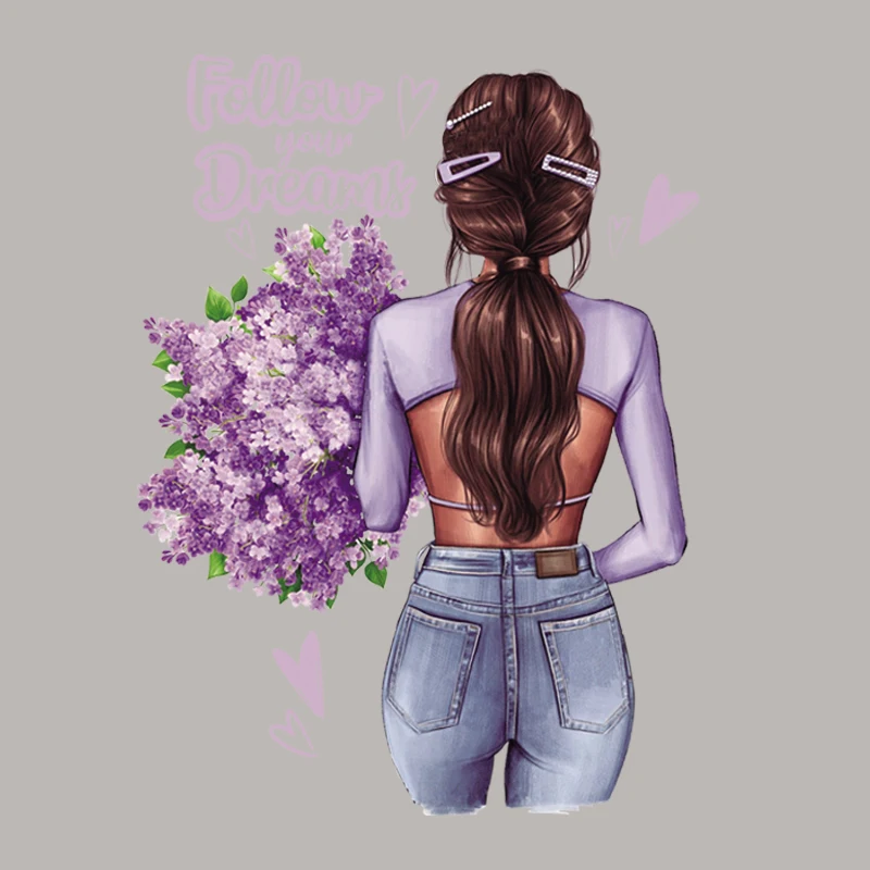 Полная любовь женщина значки винил теплопередача Diy модные топы ап...