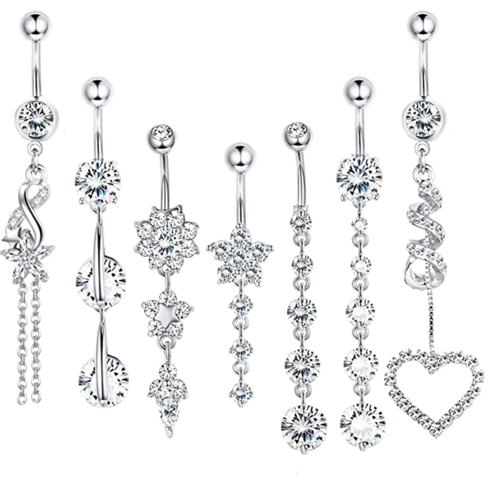 Женские кольца для пупка, из хирургической стали, 14 г, украшения для тела, пляжные украшения, Длинная подвеска, аксессуар для пирсинга пупка