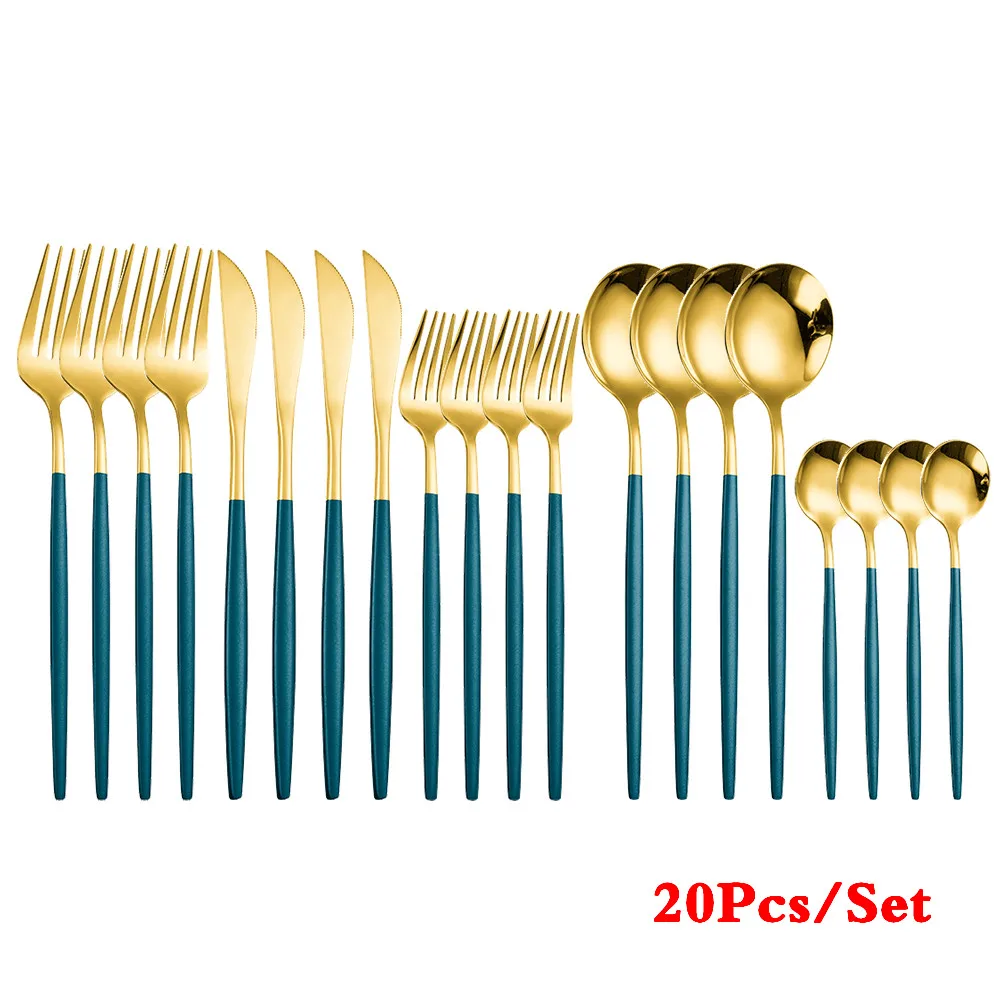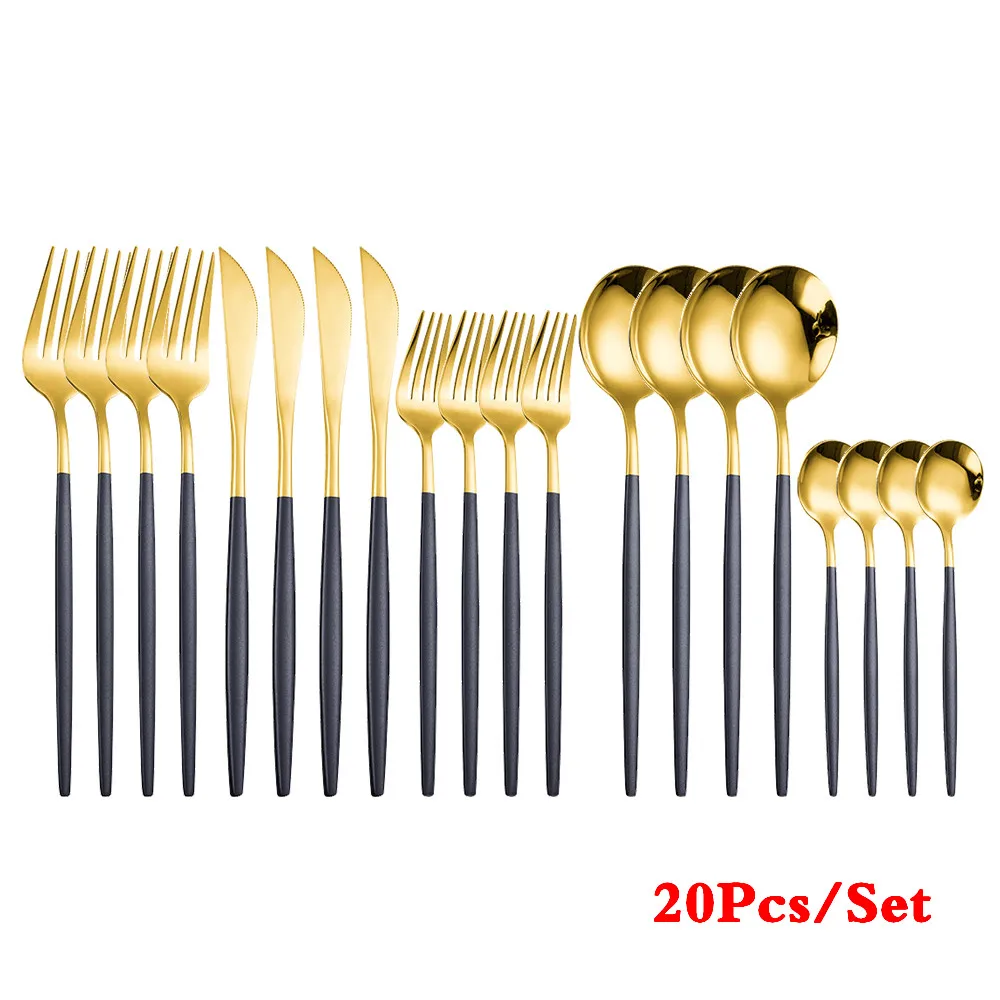 Набор столовых приборов из 20 предметов в западном стиле, столовая посуда из нержавеющей стали, черная ложка, вилка, нож, столовый набор, домашние столовые приборы в комплекте