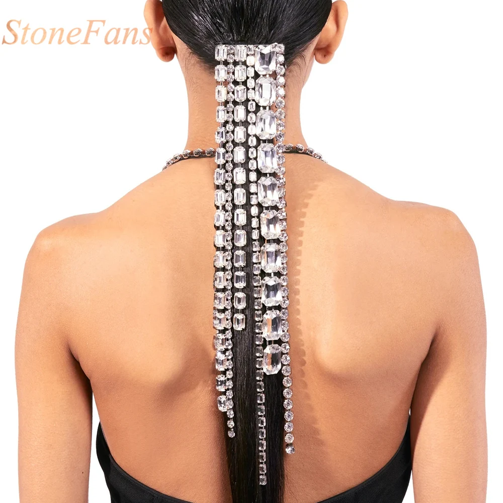 Материал цепи: цепочка Стразы Пол: для женщин Модный стиль: модная свадебная тиара в стиле бохо Бренд: StoneFans Стиль повязки на голову: Свадебная Очаровательная Повязка на голову Посылка: цепочка для волос с кисточками стразы 1 шт.
