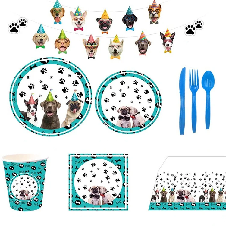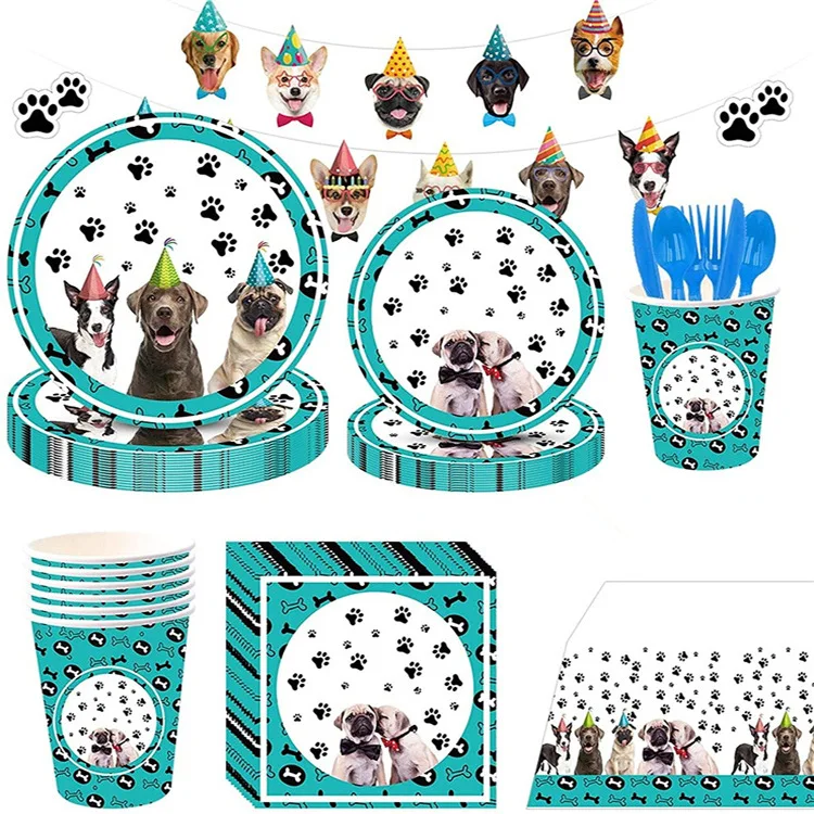 Одноразовая посуда для собак, набор, утолщенные украшения для дня рождения, праздничный бумажный стаканчик, тарелка, нож, вилка, ложка, набор для детского душа