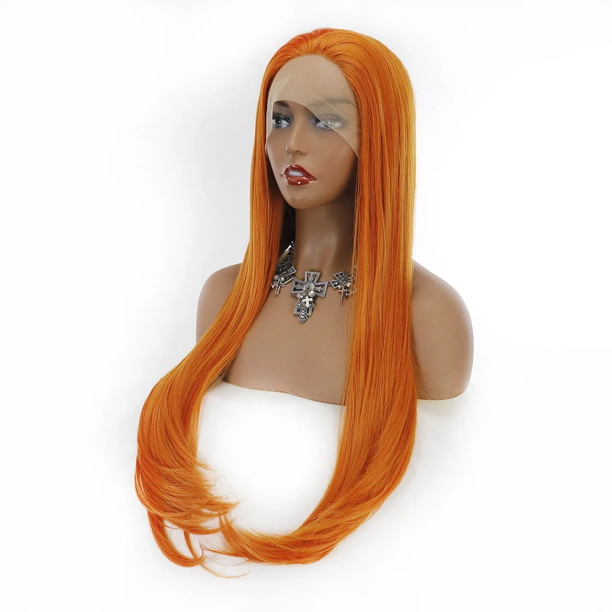Длинные шелковистые прямые парики из прозрачного кружева 180 плотности, парик из синтетических волос, Термостойкое волокно, безклеевые парики для косплея