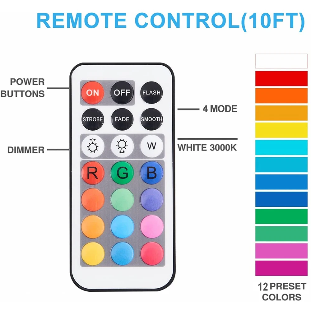 2. Цвет излучения: RGB (13 цветов на выбор, может быть контроллер с помощью пульта ДУ)