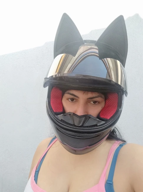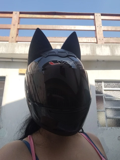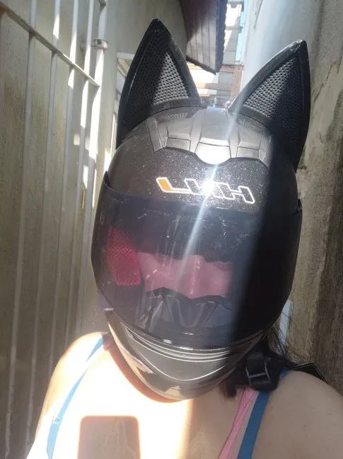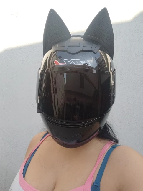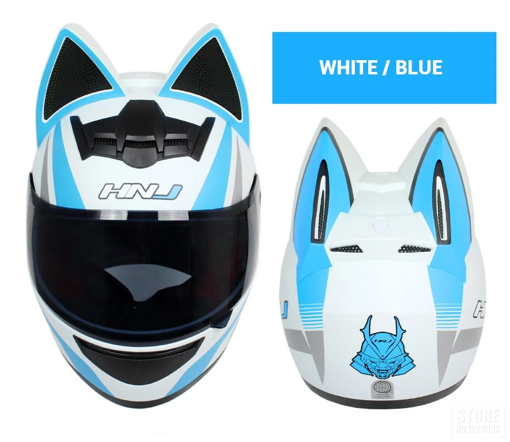 Мотошлем HNJ, женский, с кошачьими ушками, на все лицо, мотоциклетный шлем, черный