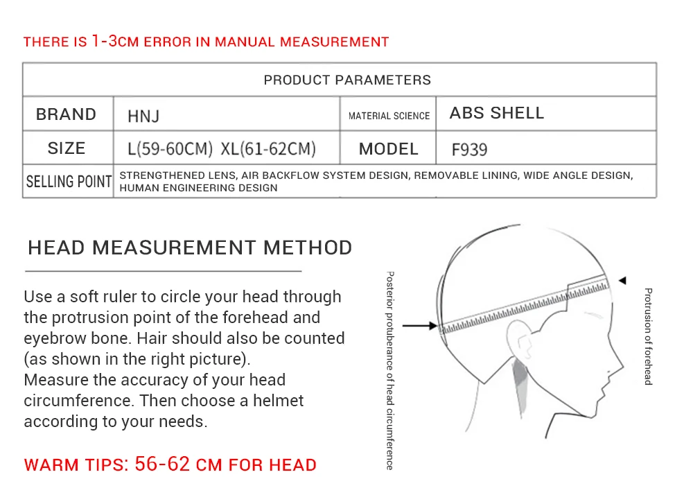 Название: мотоциклетный шлемБренд: HNJ933Состояние: абсолютно новыйПол: мужские/женские мужскиеМатериал: АБС-пластик. EPSЦвет: как на фотоВес: шлем 1800 гРазмер: M, L, XL, пожалуйста, выберите размер в таблице размеров в соответствии с размером