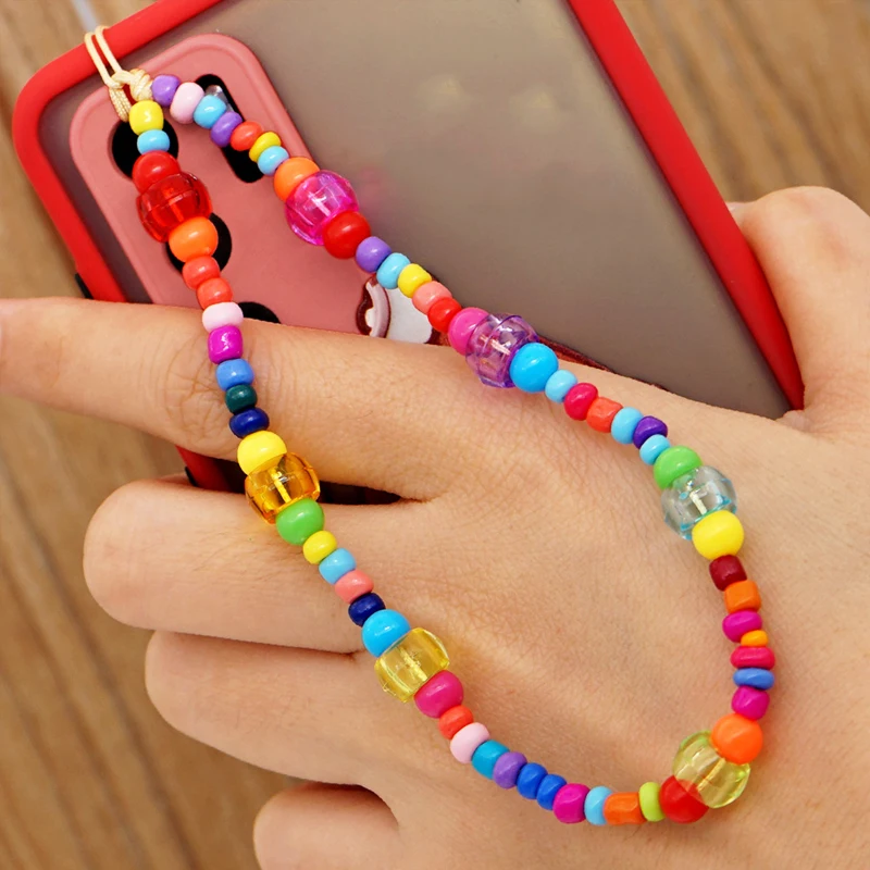 Летняя цепочка для телефона, шнурок, яркие бусины, искусственные бу...