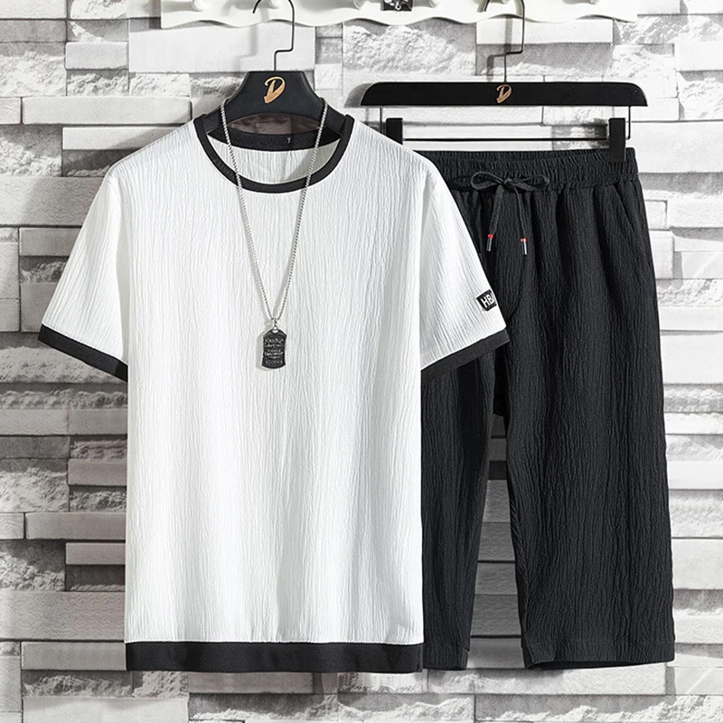Костюм спортивный мужской льняной из 2 предметов, повседневный Быстросохнущий комплект с футболкой и шортами, дышащий, для фитнеса, бега
