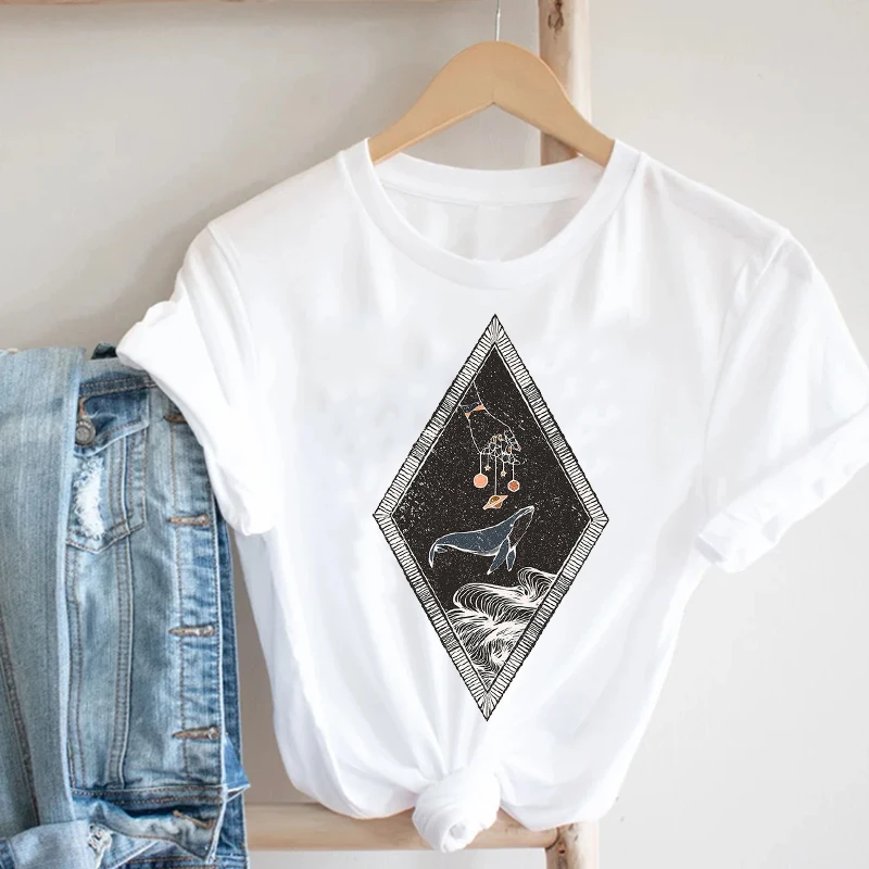 Футболка женская с принтом Луны и космоса, милый топ с графическим ...