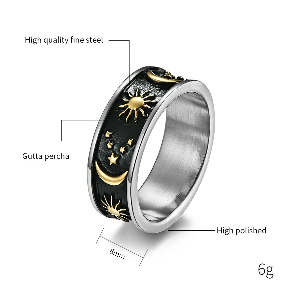8 мм Нержавеющаясталь луна, звезды, солнце кольцо для Для женщин мужчин кольца для влюбленных, ювелирные изделия творчества подарок