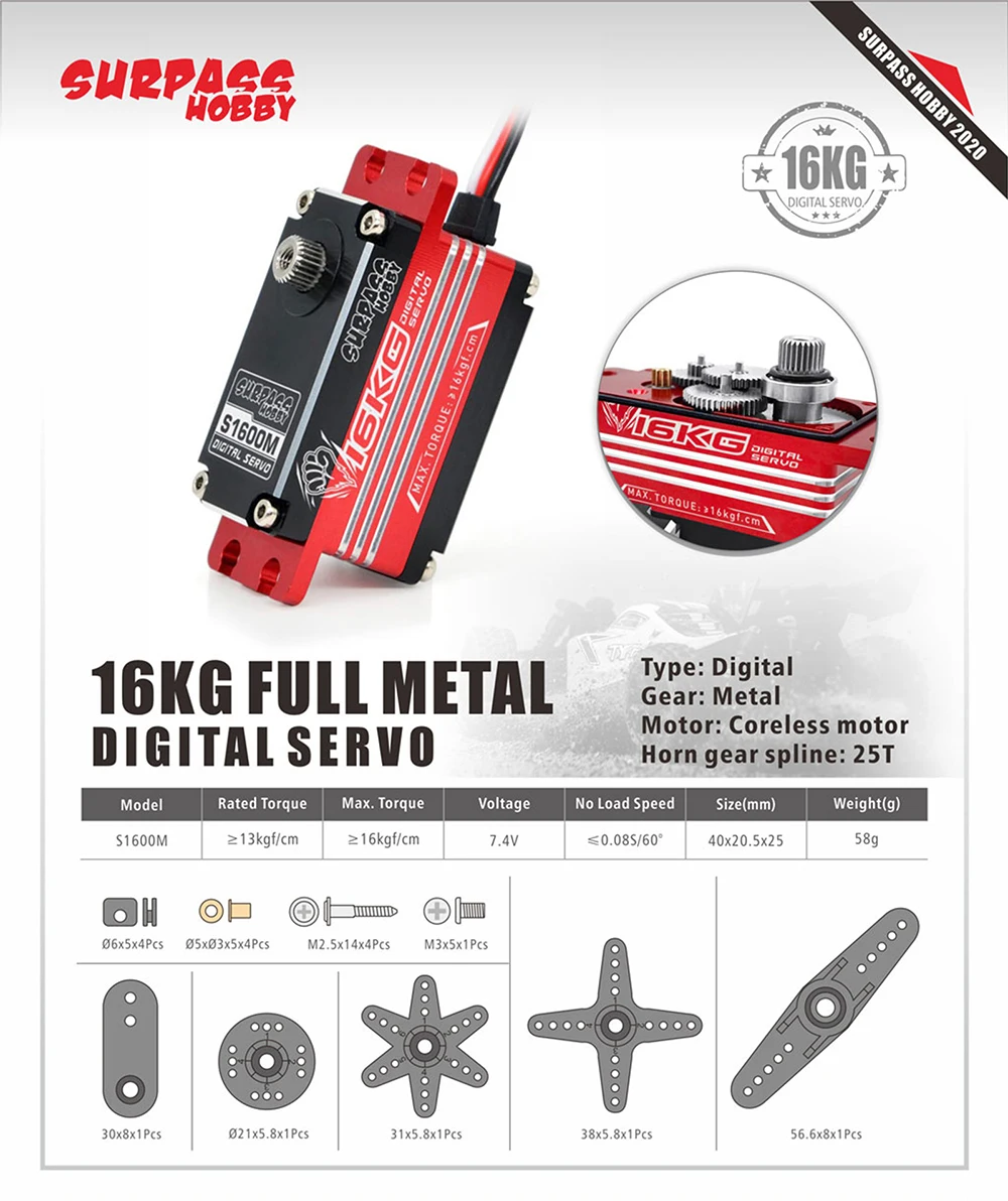 Сервопривод SURPASS HOBBY 9g 17g 25g 6kg 9kg 15kg 16kg 20kg 24kg 25...