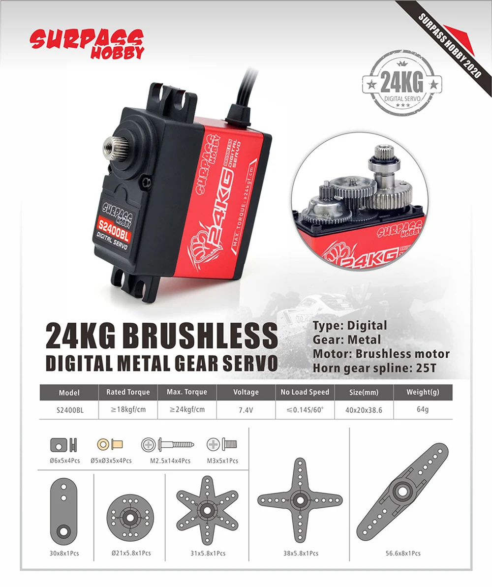 Цифровой сервопривод Surpass Hobby, 24 кг, S2400BL, с бесщеточным д...