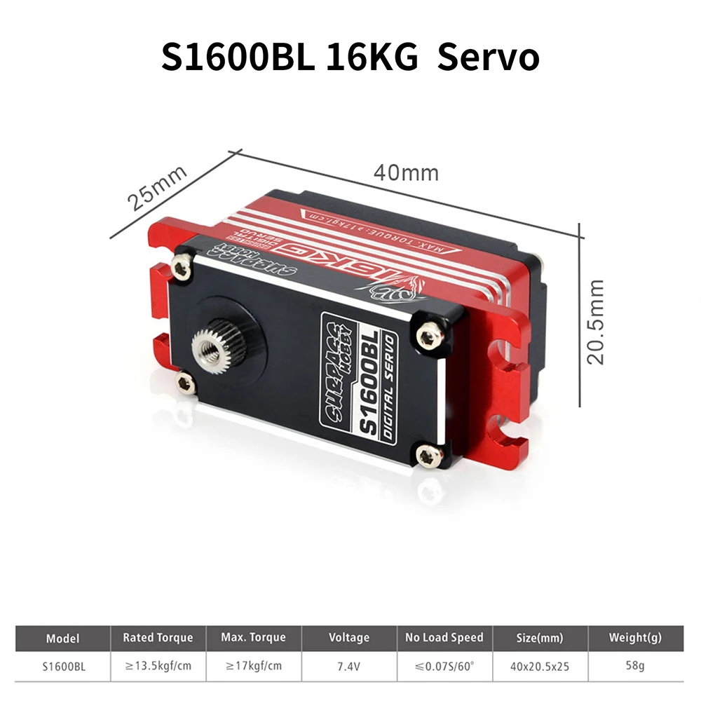 -Высокоточные шестерни.-Высокопроизводительный цифровой сервопривод.-Низкий уровень шума.-Большой крутящий момент.Характеристики:S1600BLБренд: Surpass HobbyМодель: S1600BL Крутящий момент, крутящий момент: ≥ 17kgf. См при температуре не выше 7,4Операционной Напряжение: 6 ~ 7,4 V DCБез нагрузки Скорость: ≤ 0,07 сек/60 ° при температуре не выше 7,4Рабочий угол перемещения: 90 ° ± 10 °(1000 ~ 2000 us)Механический угол ограничения: 180 ° ± 10 °(500 ~ 2500us)Вес: 58 ± 0,5 гМатериал корпуса: металлический корпусМатериал комплекта передач: металлическая Шестерня sТип двигателя: бесщеточный двигатель