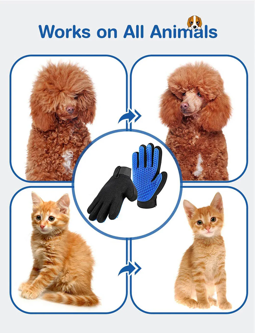 Средство для удаления волос для длинных и коротких волосИдеально подходит для длинных, коротких и кудрявых собак, кошек, лошадей и других домашних животных, ухаживает за волосами быстро, мягко и эффективно; Линяющие волосы прилипают к перчатке, позволяет легко очищать и удалять волосы.