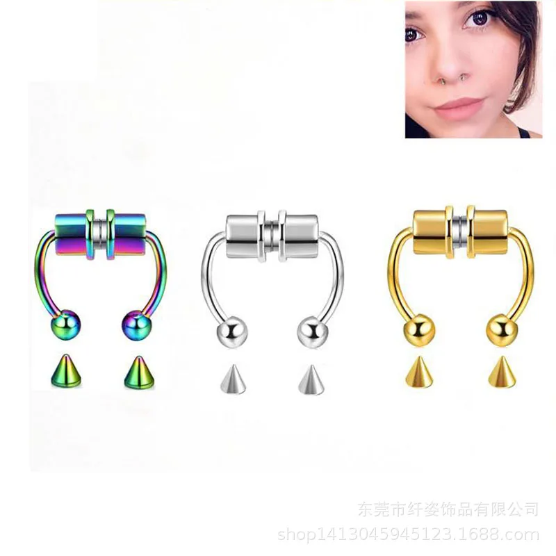 Кольцо в нос, многоразовое, из сплава, имитация магнитной подковы, не пирсинг кольцо, ювелирные изделия для пирсинга, из нержавеющей стали, 2021