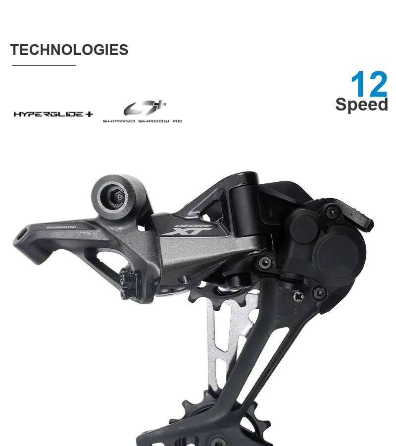 SHIMANO DEORE XT-Задний переключатель-SHIMANO SHADOW RD + - 1x12-speedОбщая мощность: 41TНизкая Звездочка-Макс./мин.:51T/51TТоп Звездочка-Макс./мин.:10T/10TМакс. Разница спереди: 0TЗубцы шкива: 13T