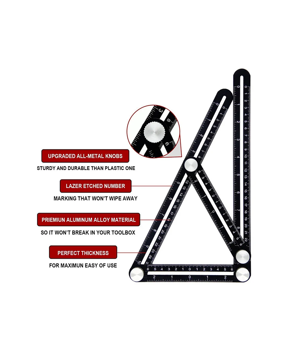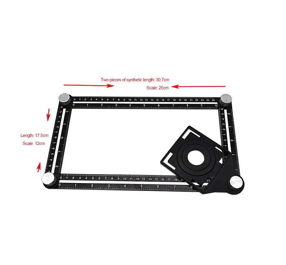 Материал: алюминиевый сплав + ABSЦвет: черныйРазмер: 31*5,5*2,6 см/12,1*2,1*1 ''(Д * Ш * В)Один Линейка Длина: 17,5 см/6,8''Один линейка маркировки номер: 12 см/4,7''Вес нетто: 230 г/8,1 унций