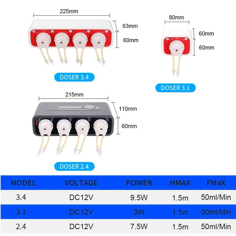 Спецификация: Модель: DOSER3.1 , DOSER3.4 , DOSER2.4 Вход: 100-240V 50/60Hz Выход: 12 В постоянного тока Посылка включает: 1 х автоматическое дозирование насоса Поставляется с мини-адаптером(Стандарт ЕС/США/Австралии/Великобритании, Пожалуйста, оставьте нам сообщение.) Особенности: