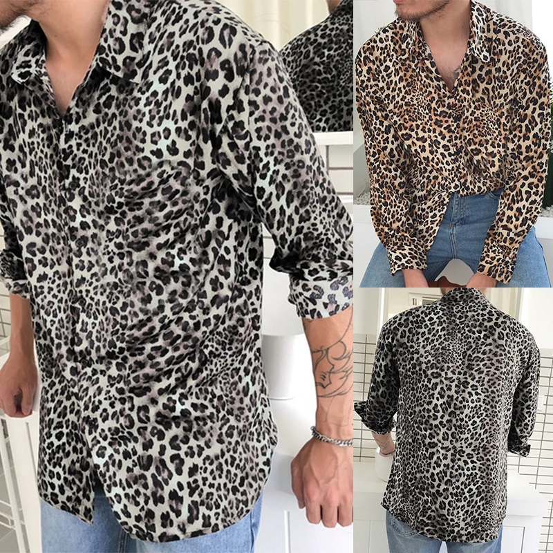 Мужская модная рубашка с леопардовым принтом, рубашка с длинным рукавом, повседневная, для вечеринки, 2021