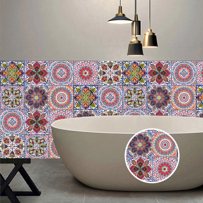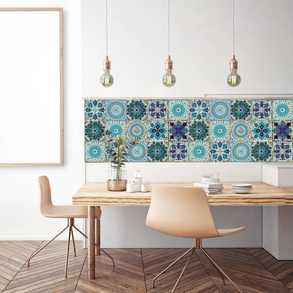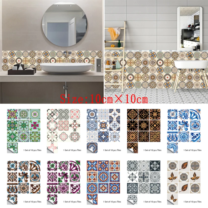 Наклейка для плитки в стиле ретро с цветочным узором, наклейка для плитки, Настенные обои для ванной комнаты, напольная плитка, потолочный самоклеящийся стикер s 10*10