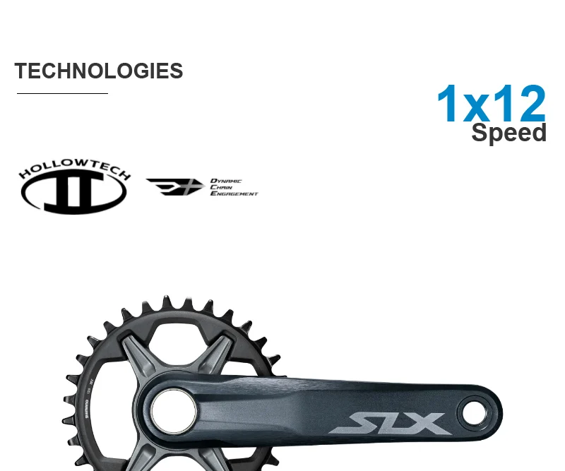SLX - HOLLOWTECH II - MTB коленчатый набор-172 мм Q-Factor - 1x12-speed-Превосходное удержание цепи-Жесткий и легкий дизайн повышает удовольствие от езды-- Легче gearing, чем racing groupsets-- Q-factor: 172 мм