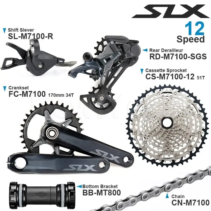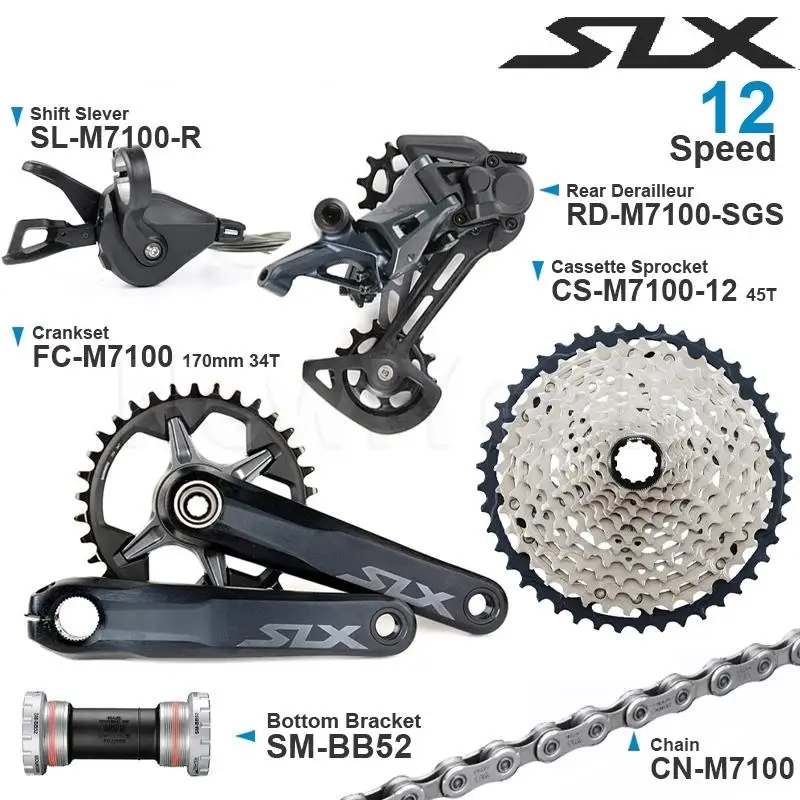 Группа включает 6/5 оригинальных деталей1.SL-M7100-R2.RD-M7100-SGS3.CS-M7100-124.CN-M71005.FC-M7100(170/175 мм 34T)6.BB-MT800 / SM-BB52/нетДетали: