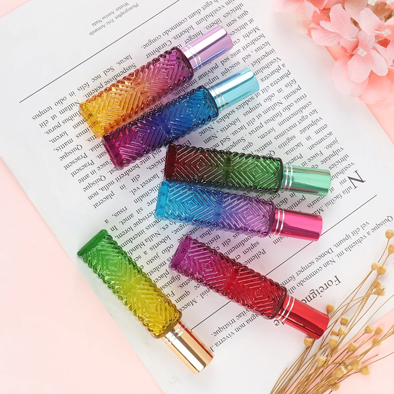 Новый многоразовый мини-флакон с ароматом 15 мл, косметическая упаковка, флакон с распылителем, цветной квадратный стеклянный пустой флакон для духов
