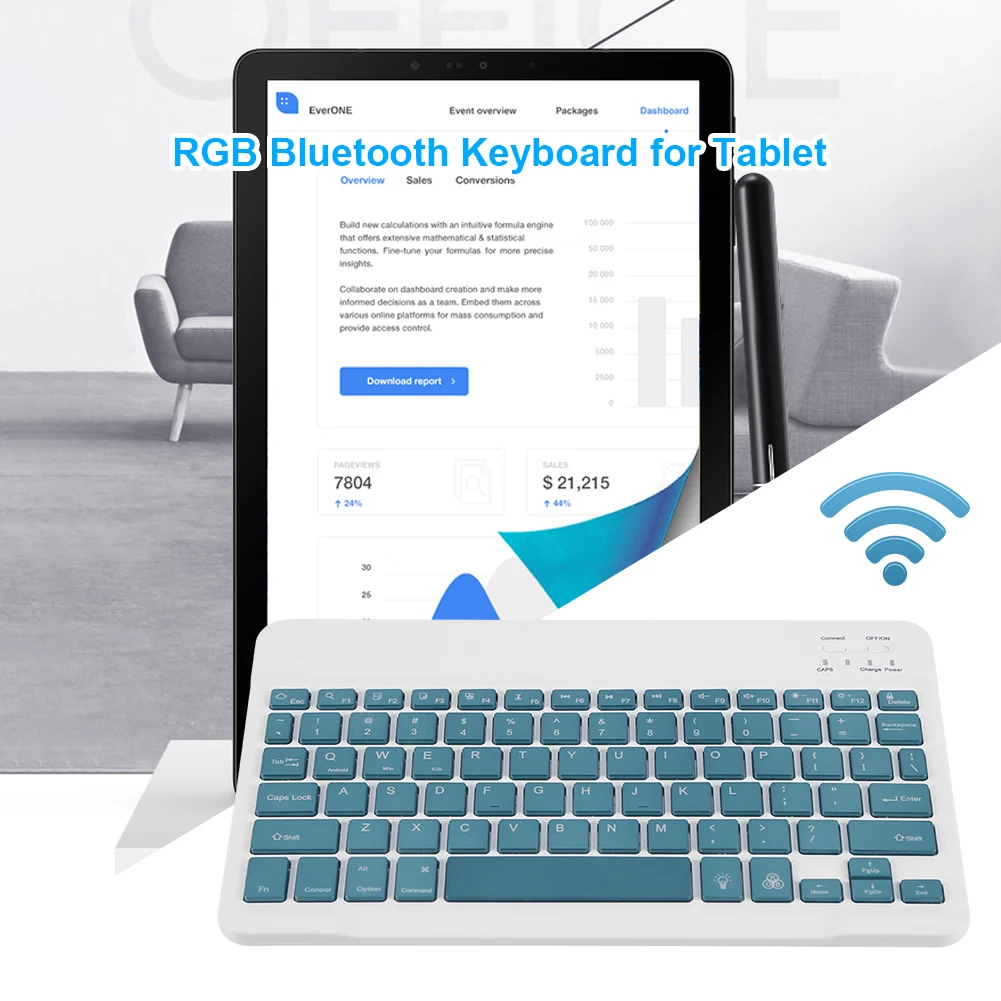 Беспроводная клавиатура для планшета с RGB-подсветкой, тонкая много...
