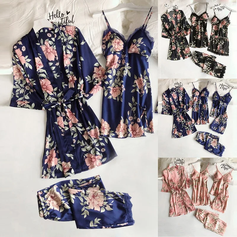 Материал: полиэстерТип: принтЖенская атласная Свадебная Пижама, Весенняя Пижама с кружевной отделкой, пижамный комплект с цветочным принтом, одежда для сна, Повседневная Домашняя одежда, комплект нижнего белья.