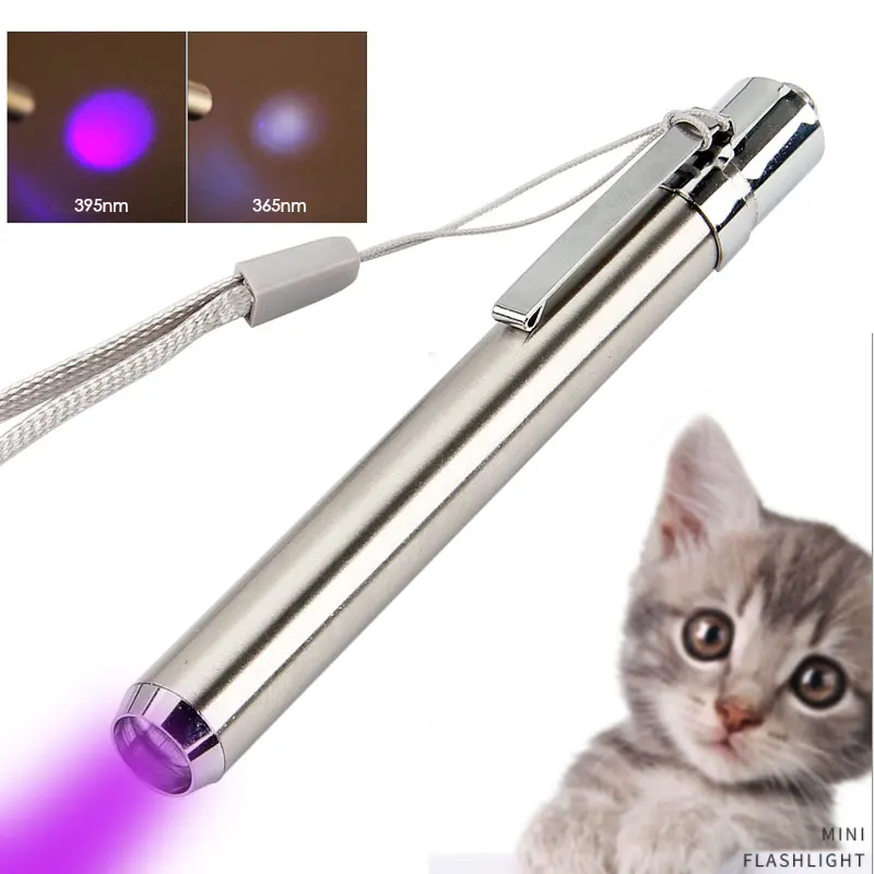 Карманная мини-лампа из нержавеющей стали, светодиодная УФ-лампа 365395, фонарь с ультрафиолетосветильник, батарейка АА для проверки маркеров