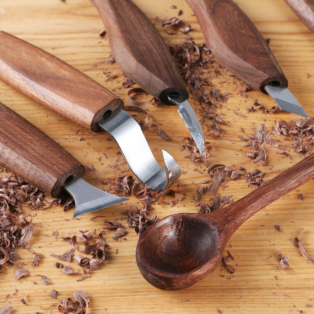 Нож для резки из нержавеющей стали высокого качества (изогнутыйпрямой) с коричневой деревянной посудой рукоятка из ореха, инструменты для резьбы по дереву