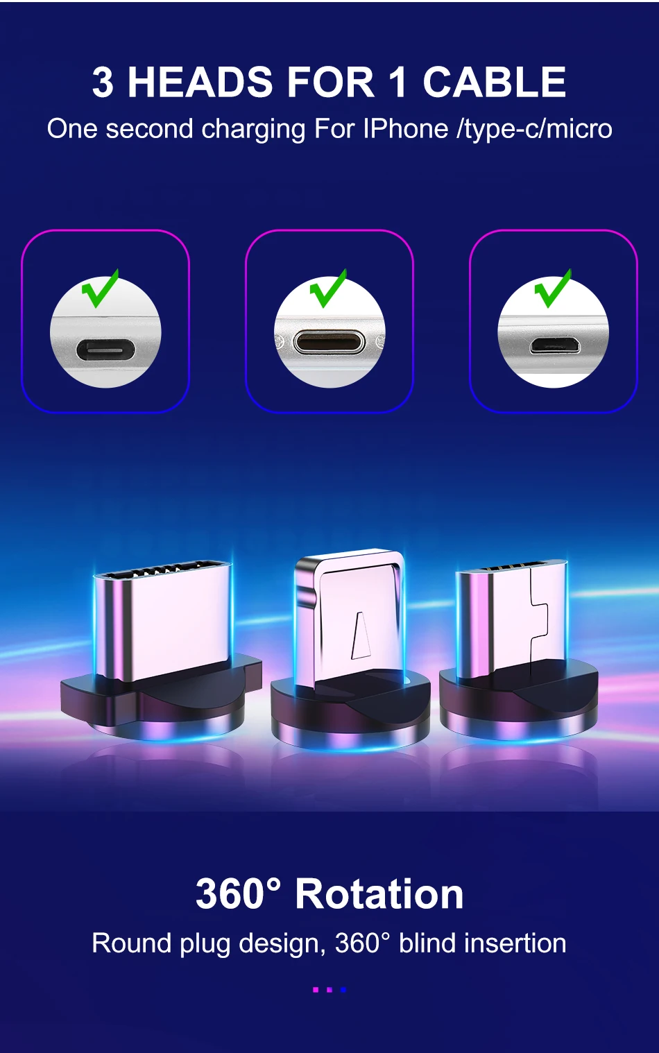 Feature1360 Degree Rotate Round Magnetic Cable