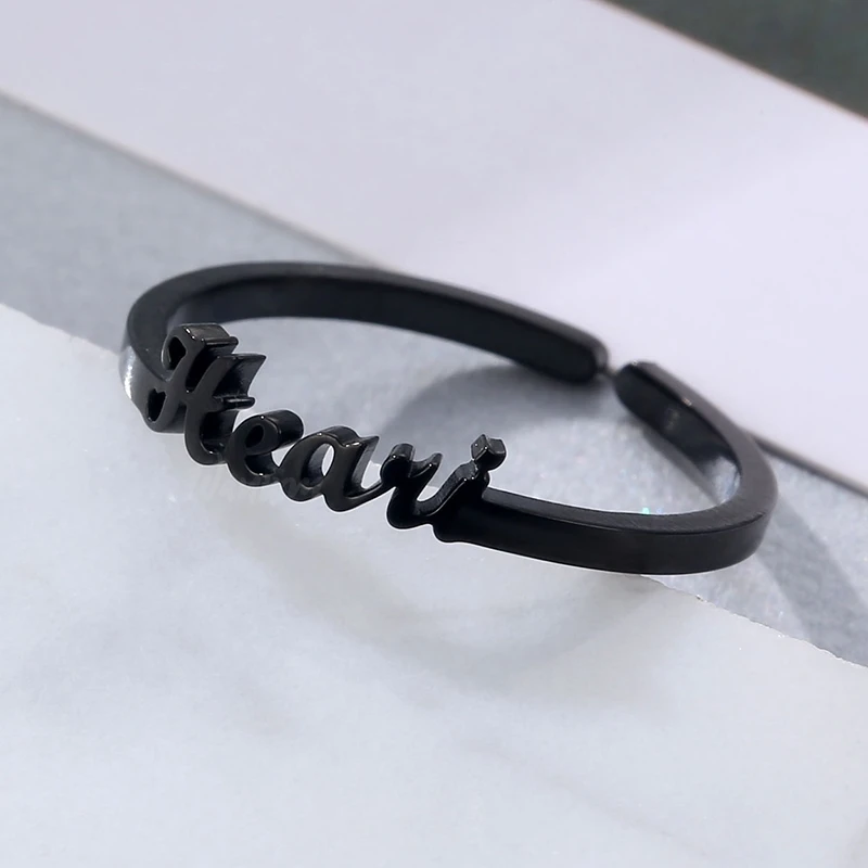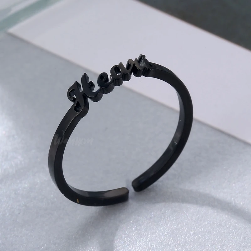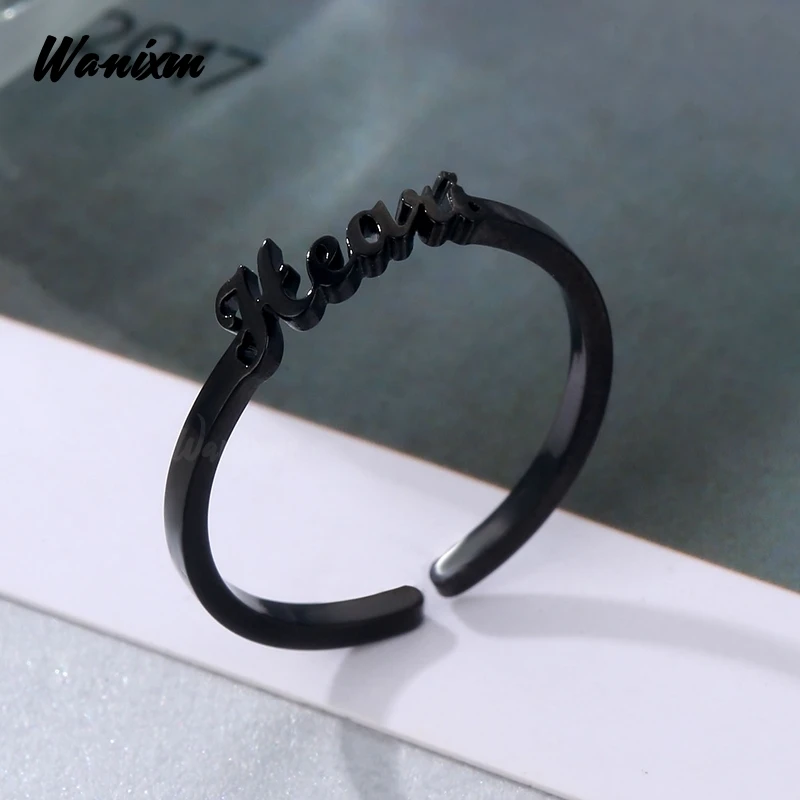 Из нержавеющей стали на заказ в стиле хип-хоп Имя Кольца для женщин с возможностью напечатать на заказ черный Цвет Регулируемый письмо обручальное кольцо ювелирные изделия