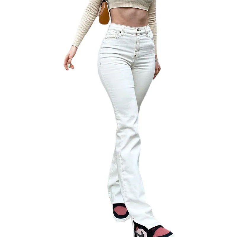 Джинсы женские с разрезом, элегантные брюки из денима в Корейском стиле, с завышенной талией, в стиле 90-х, уличная одежда, белый цвет