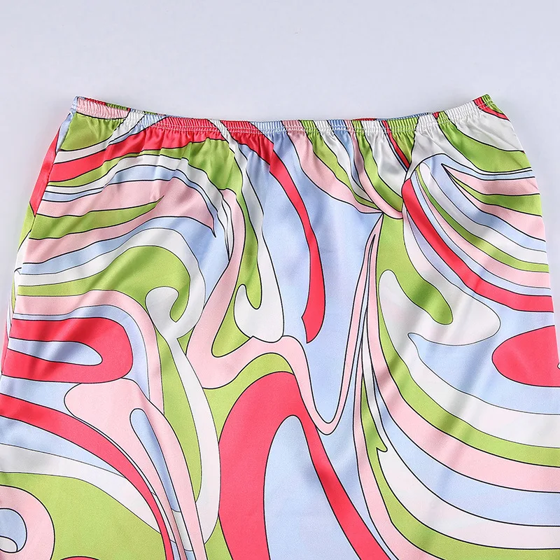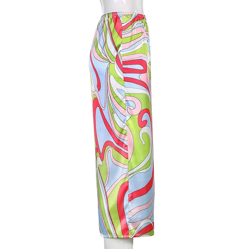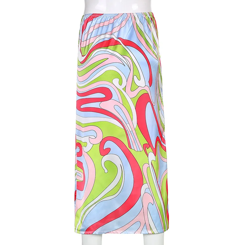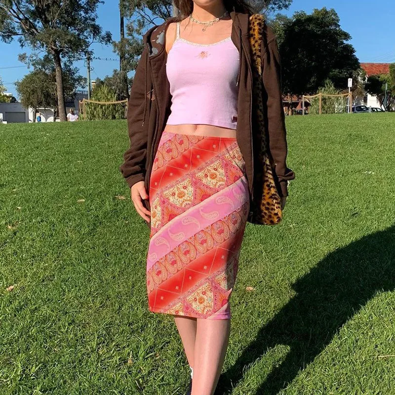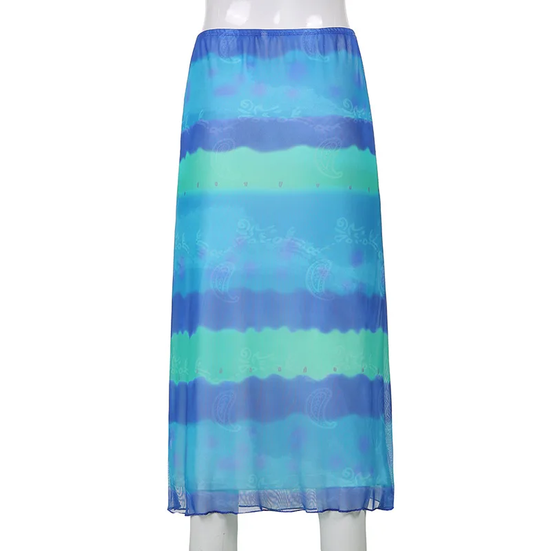 Женская юбка в полоску Y2K, длинная юбка с принтом тай-дай и высокой талией, милые юбки до середины икры в стиле ретро, лето 2021