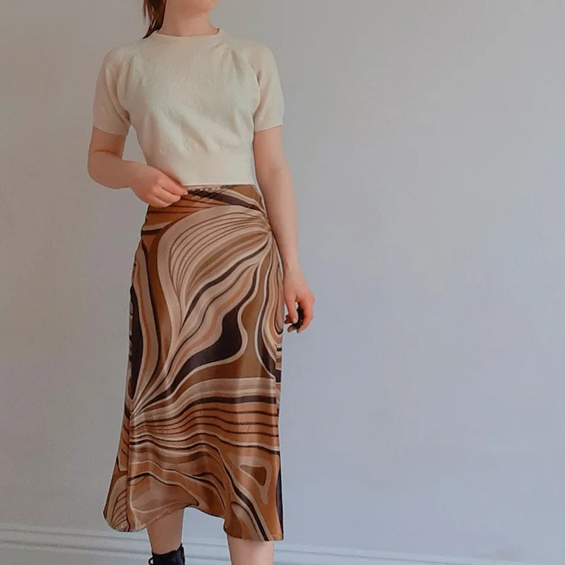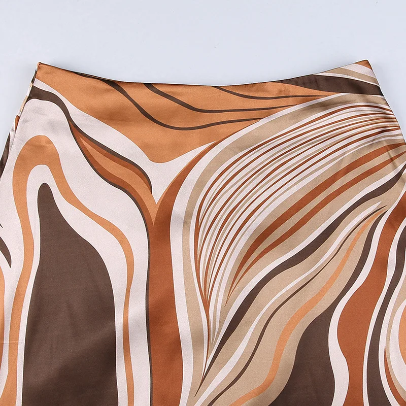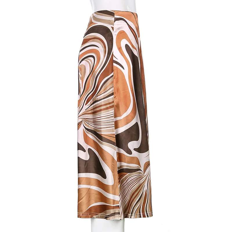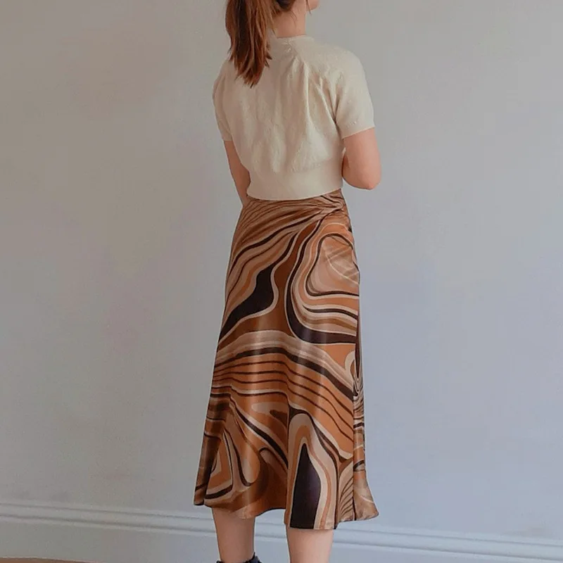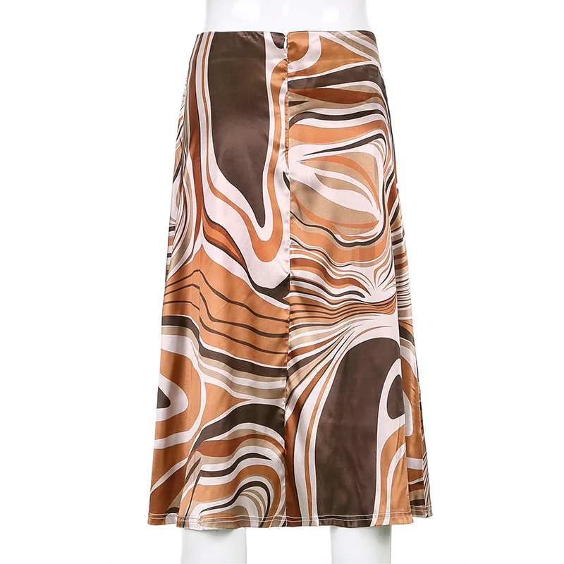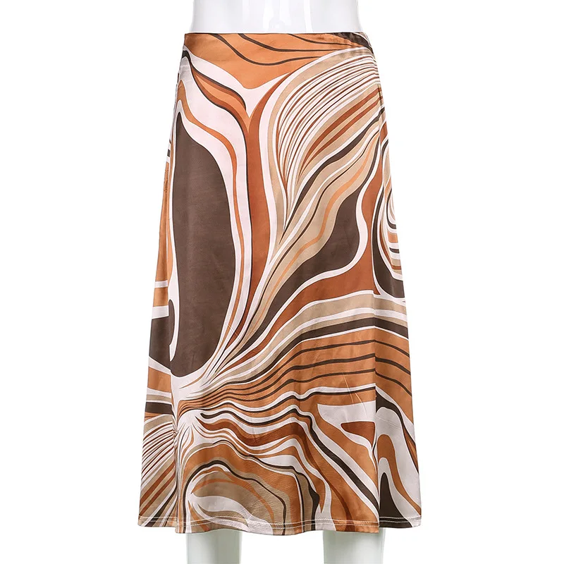 Юбка-миди Женская, коричневая, с волнистым принтом в стиле 90-х, с ...