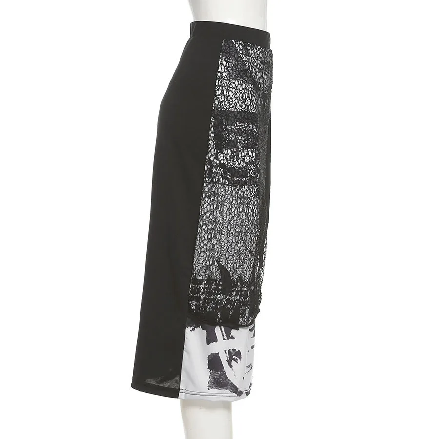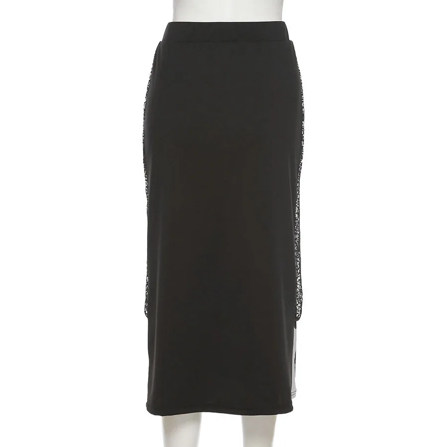Базовая кружевная Лоскутная прямая Длинная юбка, Женская однотонная...