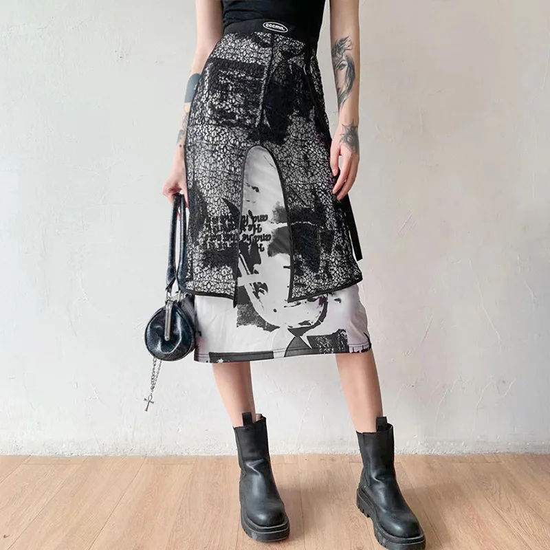 Юбка-миди Женская шелковая составного кроя, Готическая длинная юбка...