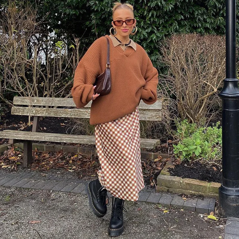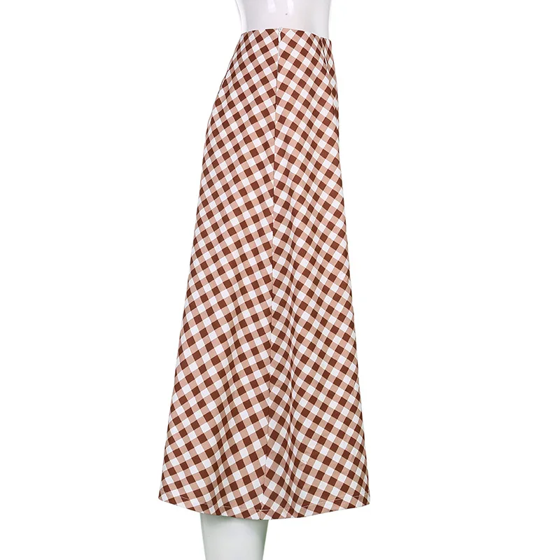 Юбка-миди Женская в клетку, с высокой талией, свободная, винтажная
