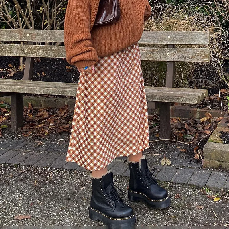 Gitana 2021 Осень Фея Гранж Длинные Юбки Женщины Каваи Клетчатая Че...