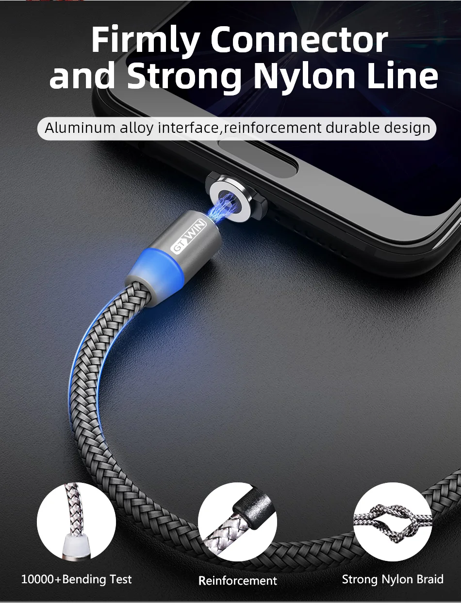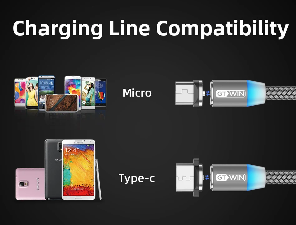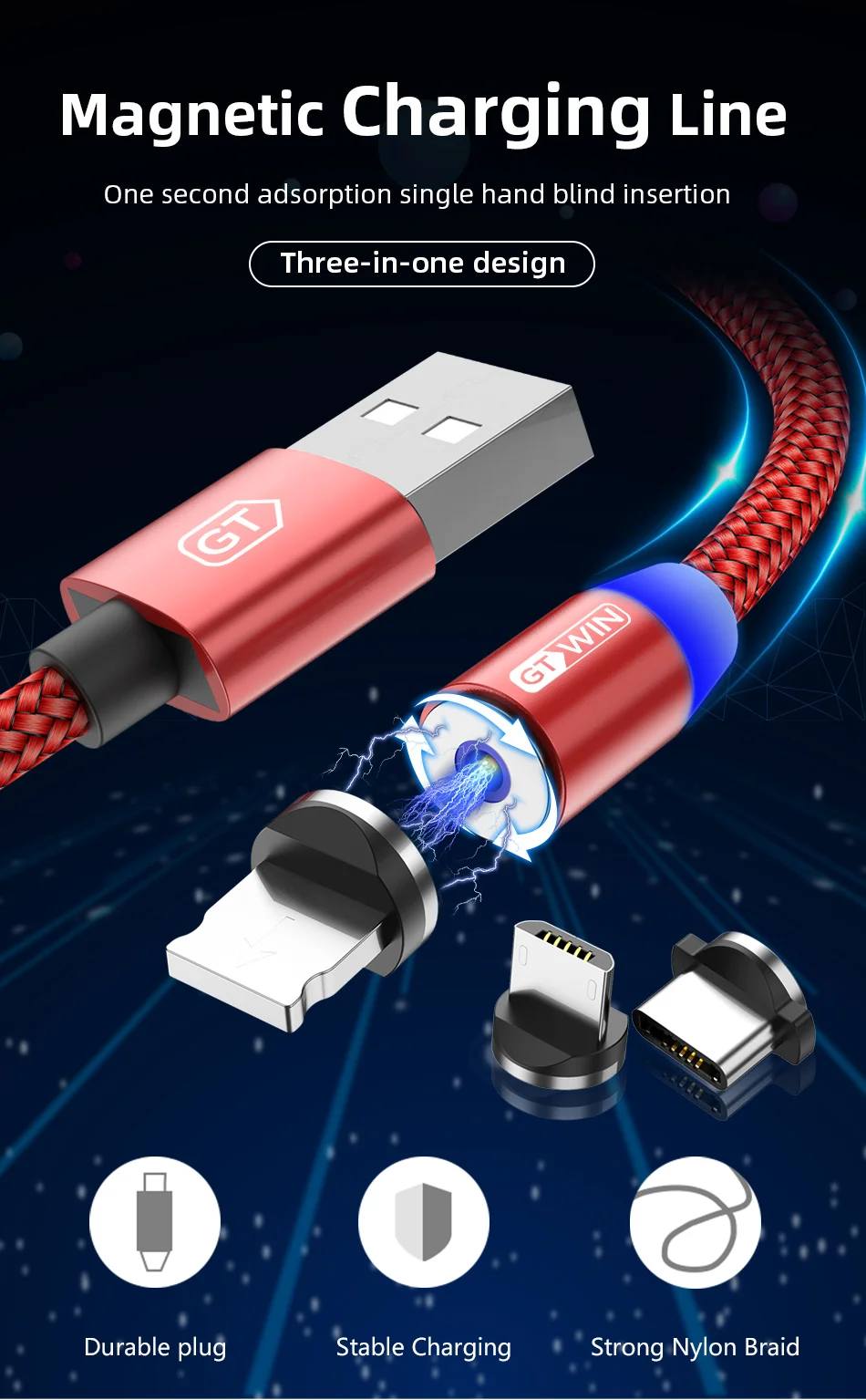 Магнитный кабель GTWIN Micro USB, Type-C, для iPhone 12, 11, Xiaomi mi 10, mi 9, Huawei P40, P30, с поддержкой быстрой зарядки