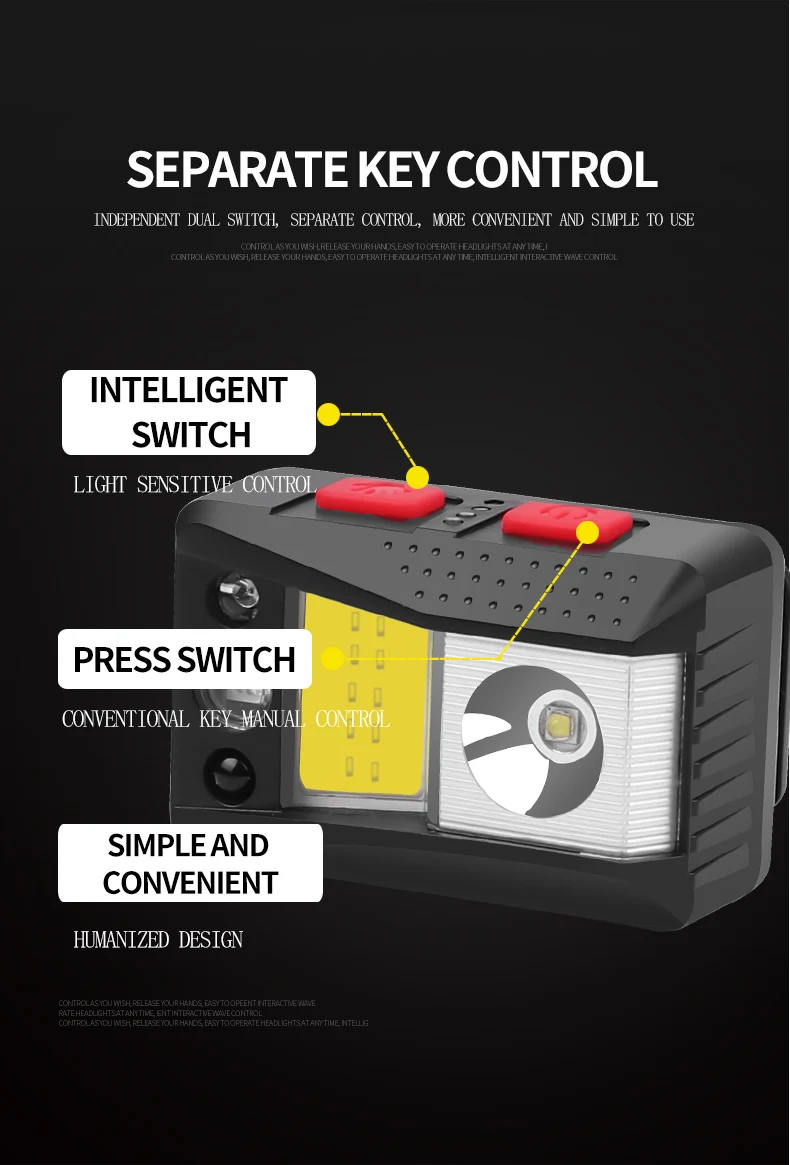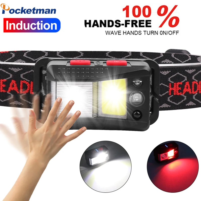 60000LM мощный светодиодный светильник на голову с датчиком, светильник на голову, USB Перезаряжаемый налобный фонарь, водонепроницаемый фонарь для кемпинга, пешего туризма