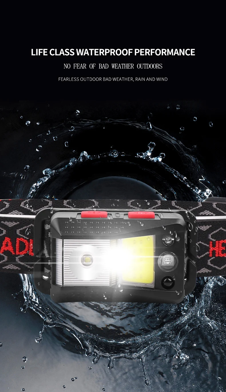 Мощный светодиодный головсветильник фонарь с датчиком, Головной фонарь с зарядкой от USB, Головной фонарь, водонепроницаемый Головной фонарь для кемпинга, походов